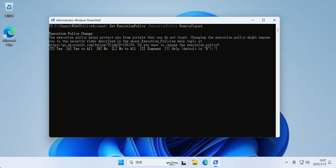 Set-ExecutionPolicy -ExecutionPolicy RemoteSigned1