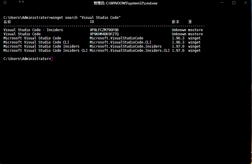 --id:将搜索限制为应用程序的 ID。 该 ID 包含发布者和应用程序名称。--name:将搜索限制为应用程序的名称。-s、--source:使用指定的源名称(msstore 等)查找包。--versions:显示程序包的可用版本。